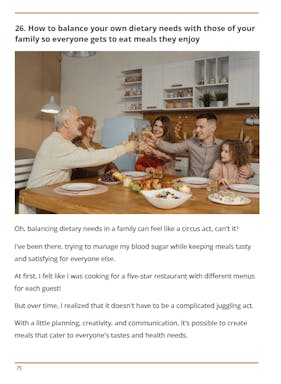 - How to balance your own dietary needs with those of your family so everyone gets to eat meals they enjoy